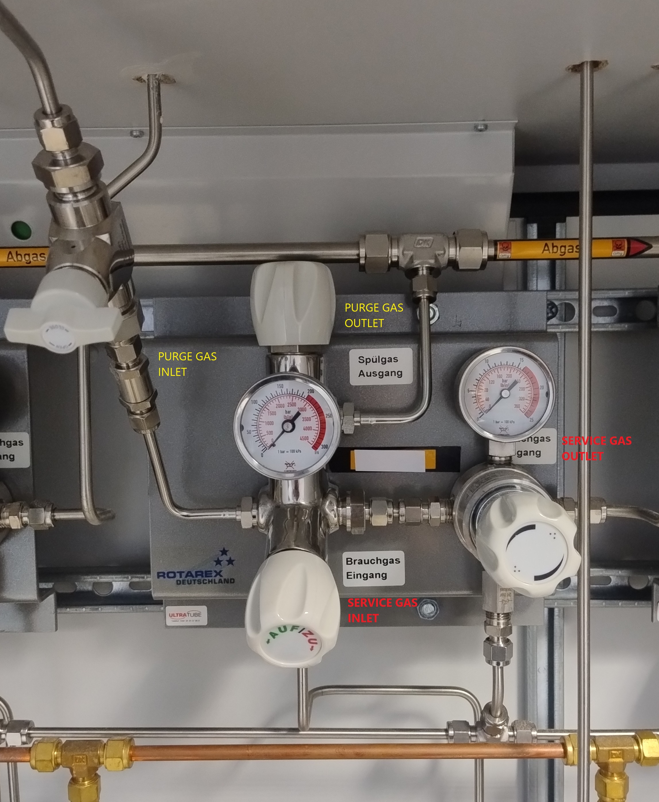 - Open the purge gas inlet. Let the purge gas clean the valve for a few seconds.